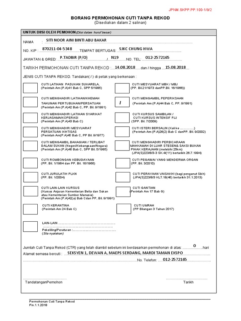 Borang Cuti Tanpa Rekod PDF